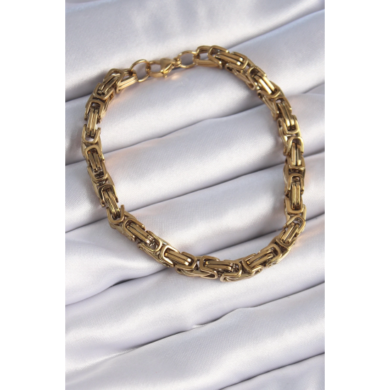 Mey İthalat® 316L Çelik Gold Renk Kral Zincir Model Erkek Bileklik