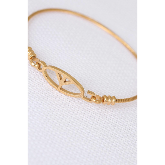 Mey İthalat® Gold Metal Çelik Figürlü Erkek Kelepçe Bileklik