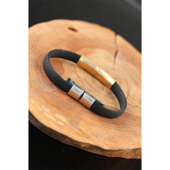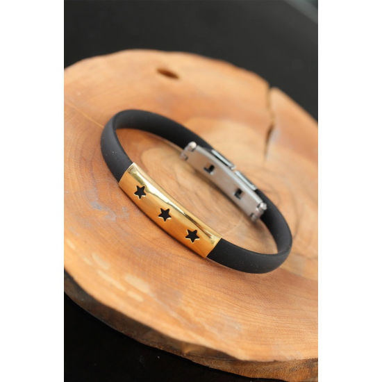 Havalı ve şık olmak için Gold Renk Çelik Yıldızlı Tasarım Siyah Renk Silikon Erkek Bileklik modeli uygun bir seçim olacak.