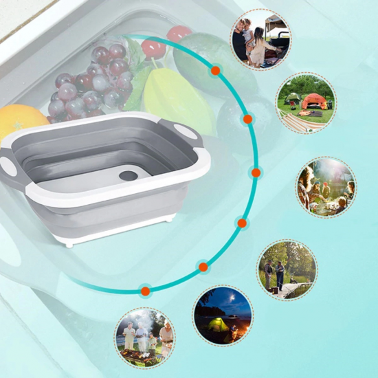 Katlanabilir Süzgeçli Kesme Doğrama Tahtası Badya Leğen