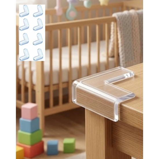 Mobilya köşe koruyucu seti, ev içerisinde masa ve sehpa köşelerinden kaynaklanabilecek kazaların önüne geçmek için tasarlanmış kullanışlı bir güvenlik ürünüdür. Özellikle bebekli ve çocuklu evlerde güvenli bir yaşam alanı oluşturmak için tercih edilir.Yumuşak silikon içerikli plastik materyal darbe emici özelliğe sahiptir. Bu sayede çarpma durumlarında yaralanma riskini azaltmaya yardımcı olur.Şeffaf tasarımı sayesinde mobilya görünümünü bozmaz ve estetik bir kullanım sunar.8 adet köşe koruyucu içeren paket sayesinde birden fazla masa veya sehpa için kullanılabilir.
