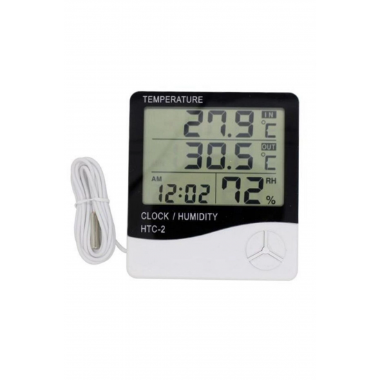 Mey İthalat® İç ve Dış Ortam Sıcaklığını Ölçebilen LCD Ekran Saat Göstergeli Alarmlı Nem Ölçer Termometre