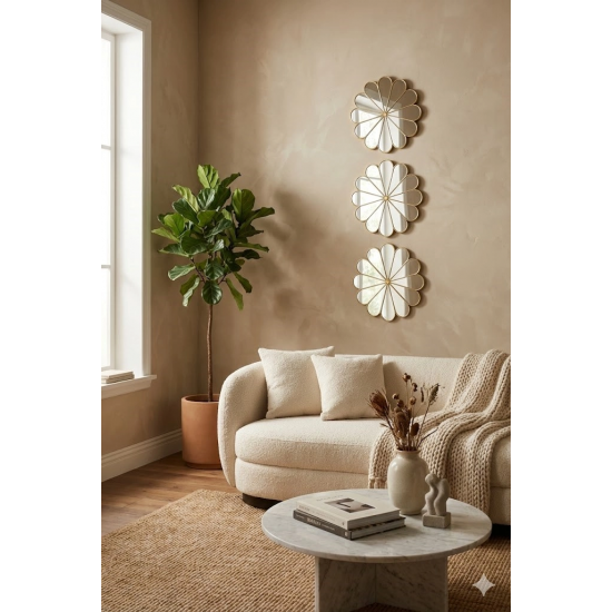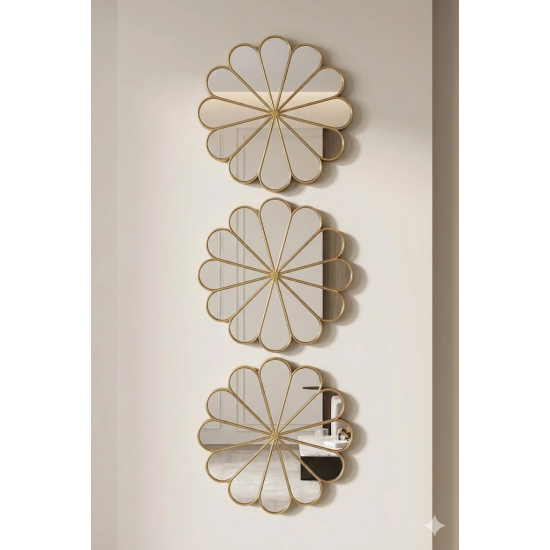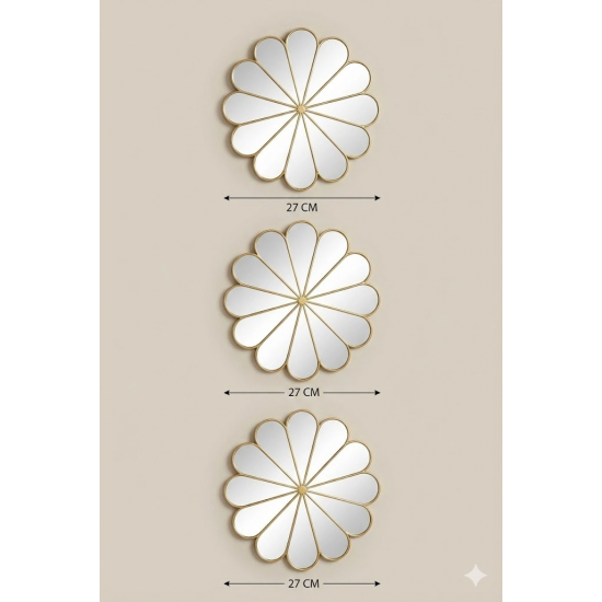 Mey İthalat® 3’lü Gold Güneş Desenli Duvar Aynası Seti 27 cm | Dekoratif Yuvarlak Ayna