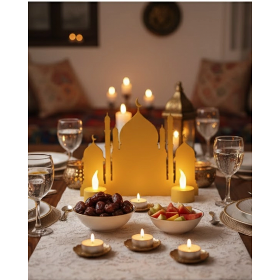 Mey İthalat® 3D İki Mumlu Cami Dekor 2 Pilli LED Mum Hediyeli Masa Üstü Süs