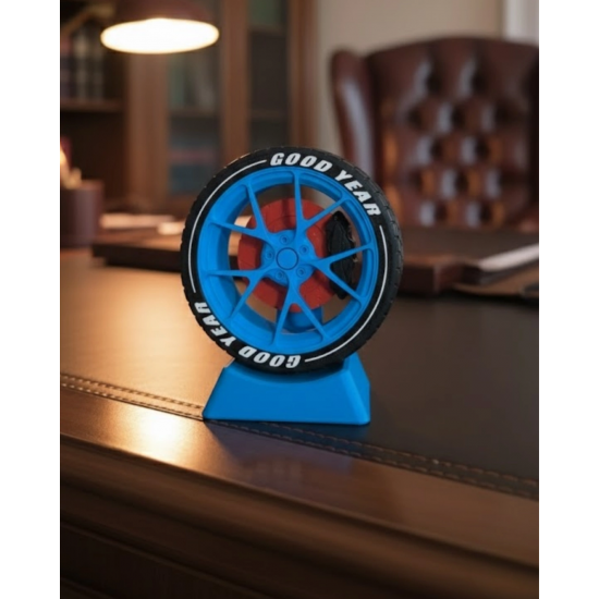 Jant tasarımlı ofis dekoru, masa üstüne karakter ve tarz katmak isteyenler için özel olarak tasarlanmıştır. Gerçek otomobil jantlarından ilham alan bu dekoratif aksesuar, ofis masası, çalışma masası, raf veya kitaplık üzerinde dikkat çekici bir görünüm sunar. Detaylı jant formu ve lastik görünümü sayesinde otomobil tutkunlarının ilgisini çeker. Kompakt yapısı sayesinde fazla yer kaplamaz, çalışma alanını bozmadan estetik bir dokunuş sağlar. Ofis ortamında farklılık yaratmak isteyenler için modern ve enerjik bir dekor seçeneğidir.