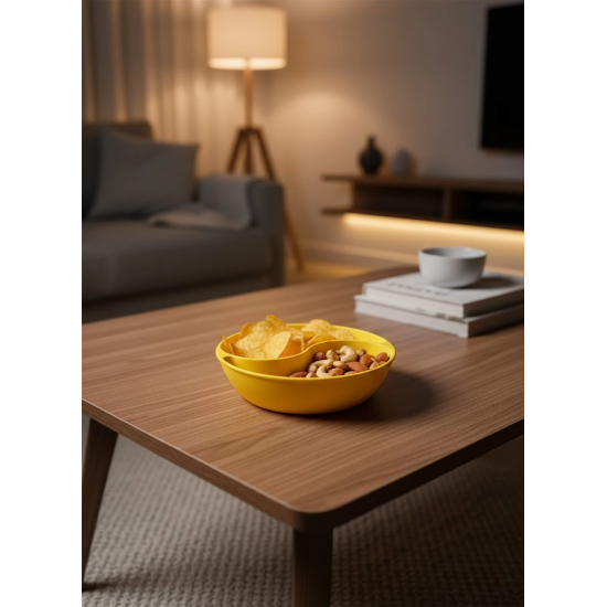 Sarı çerezlik kase seti, canlı rengi ve pratik tasarımıyla salon ve masa üstü sunumlarına keyifli bir dokunuş katar. 3x12 cm ölçüsündeki kaseler, çerez, kuruyemiş ve atıştırmalıklar için ideal boyuttadır. 4 adetlik set içeriği sayesinde misafir sofralarında ve günlük kullanımda rahatlıkla tercih edilebilir.Bölmeli yapısı, farklı çerez türlerini aynı anda sunma imkânı sağlar. Çerezler birbirine karışmadan düzenli bir sunum elde edilir. Sarı rengi, masa üzerinde enerjik ve sıcak bir görünüm oluşturur. Özellikle salon masası, sehpa veya TV ünitesi üzerinde kullanıldığında dekoratif bir detay olarak da öne çıkar.Hafif ve kullanışlı yapısı sayesinde kolay taşınır ve pratik bir kullanım sunar. Günlük çay saatlerinden misafir ağırlamaya kadar birçok farklı ortamda rahatlıkla kullanılabilir. Hem işlevsel hem de estetik bir çerezlik seti arayanlar için ideal bir üründür.