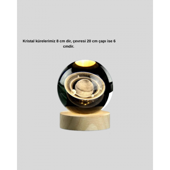 Mey İthalat® Satürn Desenli Kristal Küre LED Gece Lambası Ahşap Standlı