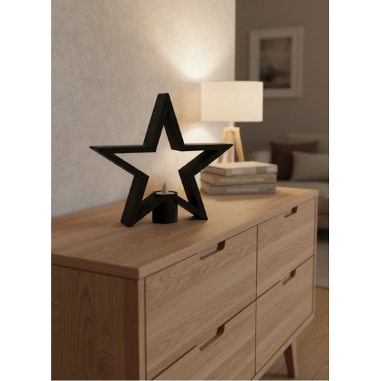 Mey İthalat® Siyah Yıldız Şeklinde Mumluk Loş Işık Dekor Aksesuarı