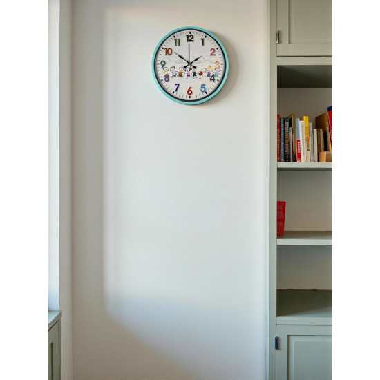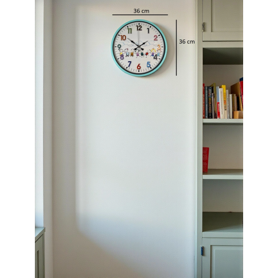 Mey İthalat® 36 Cm Turkuaz Çocuk Odası Duvar Saati