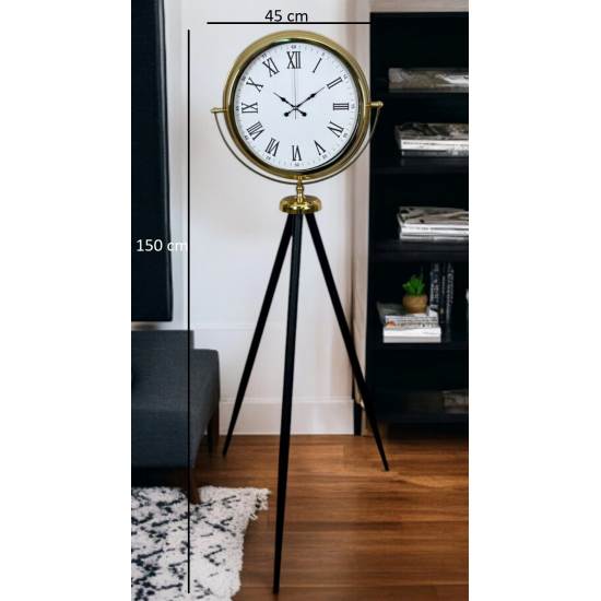 ?️ Gold Tripod Ayaklı Roma Rakamlı Saat – 150 × 45 cm