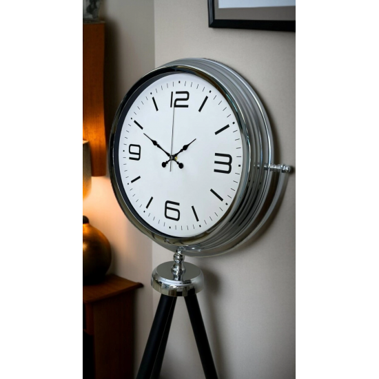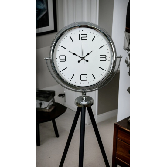 ⏱️ Krom Tripod Ayaklı Dekoratif Saat – 150 × 45 cm (Beyaz Kadran)
