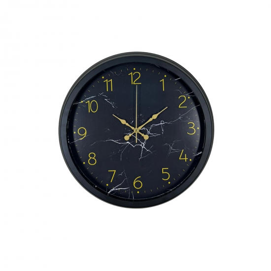 Mey İthalat® Siyah 40 Cm Mermer Desenli Metal Duvar Saati
