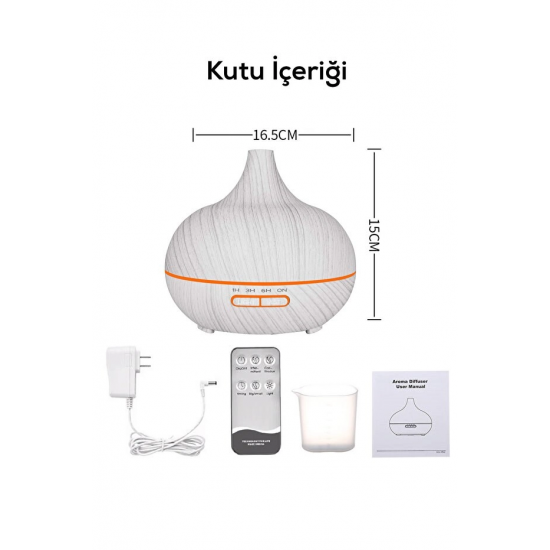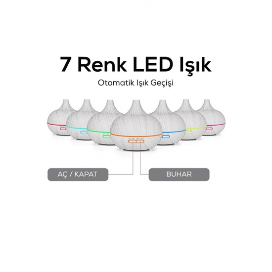 Mey İthalat® Aroma Difüzör Gece Işığı 7 Led Nemlendirici Kumandalı 550 ml Buhar Makinesi