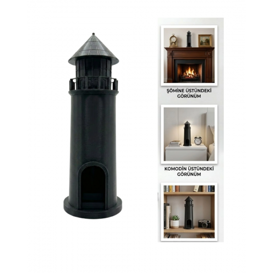 Mey İthalat® Dekoratif 3D Deniz Feneri Siyah Marin Stil Ev Dekorasyon Ürünü
