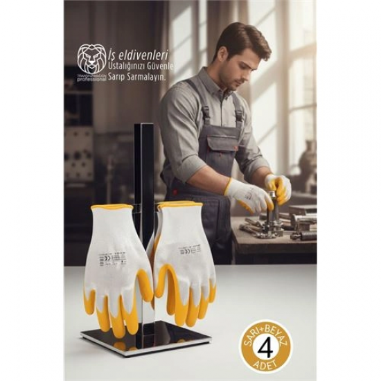 Mey İthalat® Ultra Dayanıklı Kavrama Teknolojili 4'lü İş Eldiveni Seti - Profesyonel Atölye ve Montaj Serisi