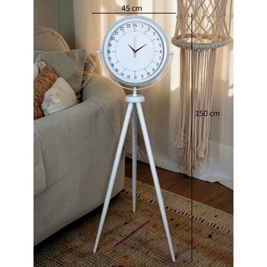 Zamanı farklı bir perspektiften sunan bu özel tasarım 24 saat göstergeli beyaz ayaklı saat, klasik saatlerden tamamen ayrılan yapısıyla dikkat çeker. Standart saatlerin aksine, bu modelde akrep 12 saat değil 24 saatlik zaman dilimini tek turda tamamlar. Bu sayede günün akışını daha net ve bütünsel bir şekilde takip etmenizi sağlar.
