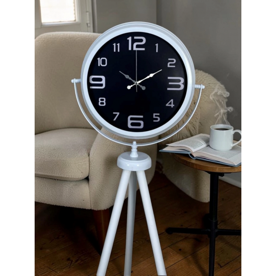 Mey İthalat® Kontrast Tasarım Beyaz Tripod Ayaklı Saat