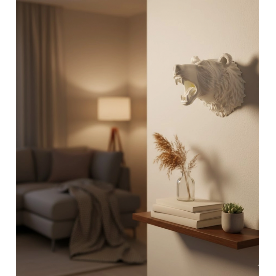 Beyaz 3D ayı başı duvar heykeli, dekorasyonuna modern, etkileyici ve güçlü bir dokunuş eklemek isteyenler için özel olarak tasarlanmış bir üründür. 25x19 cm ölçülerindeki bu dekoratif figür, beyaz renginin sadeliği ve şıklığı ile hem modern hem de minimal dekorasyon tarzlarına mükemmel uyum sağlar. Ürünün detaylı yüz hatları dikkat çekici bir gerçekçilik sunarken, 3 boyutlu kabartı yapısı duvarda güçlü bir gölge etkisi oluşturur.Hafif ve sağlam yapısı sayesinde kolayca duvara monte edilebilir. Odanın odak noktası olması için tek başına kullanılabileceği gibi, galeriler, çalışma odaları, genç odaları, ofisler veya tasarım ağırlıklı ortamlar için de harika bir tamamlayıcıdır. Ayı figürü; güç, cesaret ve koruyucu enerji ile ilişkilendirildiği için manevi anlamda bir sembol arayan kullanıcıların da ilk tercihleri arasında yer alır.Estetik tasarımı sayesinde fotoğraf çekimleri, video çekim alanları, stüdyo dekorasyonları veya mağaza vitrinlerinde de çok şık bir görünüm sağlar. Beyaz rengi, her renkteki duvar ile uyumlu olduğu için dekorasyon seçeneklerini genişletir.Ayrıca özel günler için benzersiz bir hediye seçeneğidir. Şık, farklı ve anlamı olan dekoratif objeler sevenler için ideal bir alternatiftir.