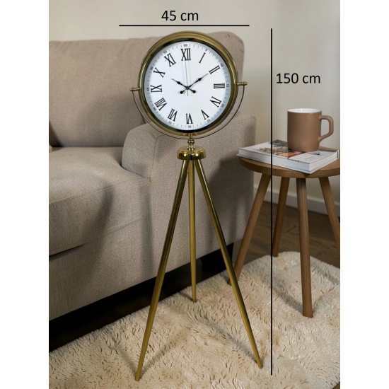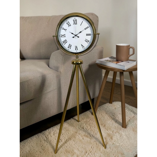 Klasik ve modern tasarımın zarif birleşimini sunan Gold Tripod Ayaklı Dekoratif Salon Saati, şık tripod ayak yapısı ve gold metal gövdesi ile yaşam alanlarınıza estetik bir dokunuş kazandırır. Roma rakamlı beyaz kadranı sayesinde hem klasik hem de sofistike bir görünüm sunarak salon, ofis ve çalışma alanlarında dikkat çekici bir dekoratif aksesuar haline gelir.