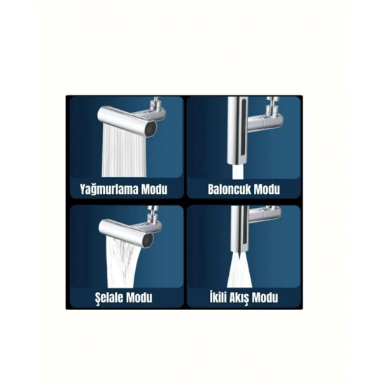 Mey İthalat® Çok Fonksiyonlu Musluk Başlığı | 4 Su Modu | Geniş Uyumlu Adaptör Seti | Mutfak ve Banyo Uyumlu