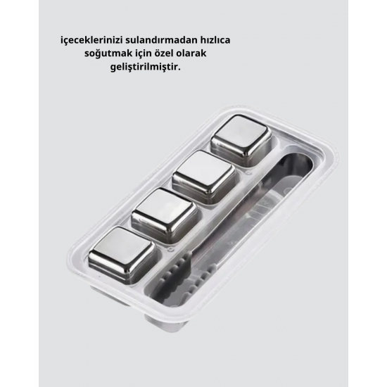 Mey İthalat® Paslanmaz Metal Buz Küpleri Seti Klipsli Sulandırmadan Soğutma Özellikli