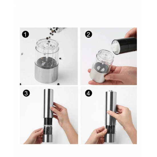 Mey İthalat® Elektrikli Baharat Öğütücü Pilli Paslanmaz Çelik Otomatik Tuz Karabiber Değirmeni