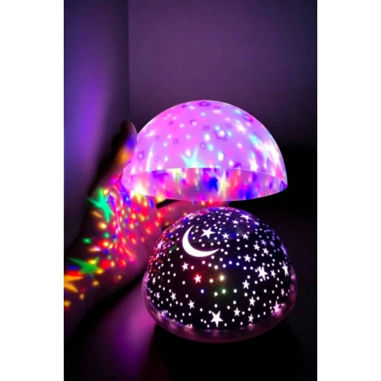 Yıldızlı Gökyüzü Projeksiyon Gece Lambası, evdeki her köşeye büyülü bir hava katmak için mükemmel bir üründür. Mavi ve mor ışıkların döner yapısı, tavanınıza büyüleyici bir şekilde yıldızlar, gezegenler ve ayı yansıtarak eşsiz bir gece manzarası sunar. Özellikle çocuklar için harika bir gece lambası olan Star Master, karanlıktan korkan çocukların daha rahat uyumasını sağlar. Gözleri rahatsız etmeyen yumuşak ışığı, gece boyunca sakin bir uyku ortamı oluşturur. Ayrıca, ışığın seviyesini ve rengini ayarlayabileceğiniz fonksiyonlarla, odanızda tam istediğiniz atmosferi oluşturabilirsiniz. Dönen yapısı sayesinde tavanınıza hareketli yıldızlar ve gezegenler yansıtarak her an farklı bir görsel deneyim yaşamanızı sağlar. Şeffaf üst kapak sayesinde ışık doğrudan tavana yansıtılabilir ya da farklı bir yönlendirilebilir. 4 adet AAA pil ile çalışan bu projeksiyon gece lambası, enerji verimli bir kullanım sağlar ve her yere kolayca taşınabilir. Star Master, sadece çocuklar için değil, aynı zamanda gece atmosferi yaratmak isteyen herkes için mükemmel bir tercihtir.