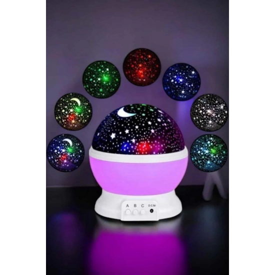 Yıldızlı Gökyüzü Projeksiyon Gece Lambası, her yaştan insan için muazzam bir görsel deneyim sunar. Mavi ve mor ışıklarla dönen yapısı, tavanınızda inanılmaz bir yıldızlar geçidi yaratır ve odanıza hareketli gezegenler, ay ve samanyolu gibi muazzam manzaralar yansıtarak adeta gökyüzünün büyüsünü evinize taşır. Özellikle çocuklar için mükemmel bir gece lambası karanlıktan korkan çocukların odasında rahatlıkla kullanılabilir ve onların uykuya geçişini daha huzurlu hale getirir. Şeffaf üst kapak sayesinde ışık doğrudan tavana yansıtılabilir veya farklı bir açıyla yönlendirilerek farklı bir atmosfer oluşturulabilir. Işık seviyesini ve rengini ayarlayarak odanızın ambiyansını istediğiniz şekilde şekillendirebilirsiniz. Ayrıca, gözleri rahatsız etmeyen tasarımı sayesinde uzun süreli kullanımlarda bile herhangi bir rahatsızlık yaratmaz. 4 adet AAA pil ile çalışan bu projeksiyon gece lambası, kolay taşınabilirlik sunar ve enerji verimliliği sağlar. Yıldızlar, gezegenler ve ayın büyüleyici ışıklarıyla odanızı aydınlatırken, hem görsel bir şov hem de rahatlatıcı bir atmosfer yaratır.