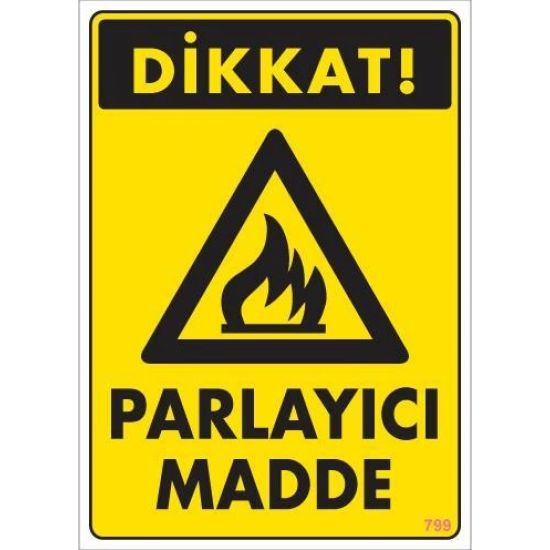 Mey İthalat® Dikkat Parlayıcı Madde Uyarı Levhası 25x35 KOD:799