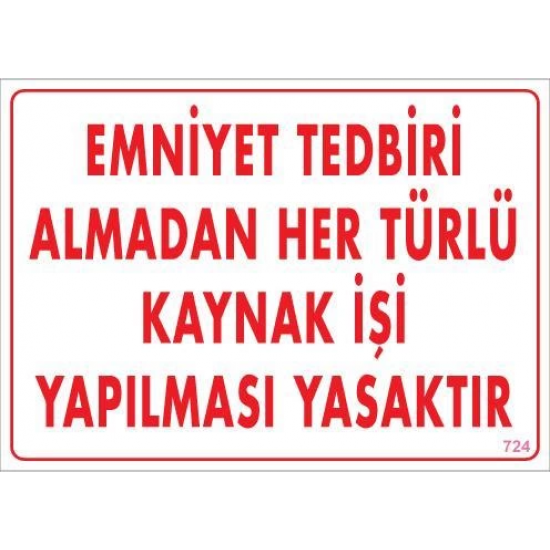 Mey İthalat® Emniyet Tedbiri Almadan Herlü Kaynak Yasaktır Levhası 25x35 KOD: 724