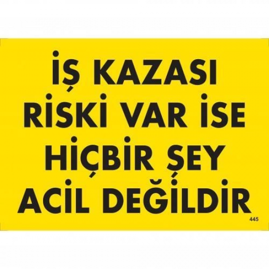 Mey İthalat® İş Kazası Riski Var İse Hiçbir Şey Acil Değildir Uyarı Levhası 25x35 KOD:445