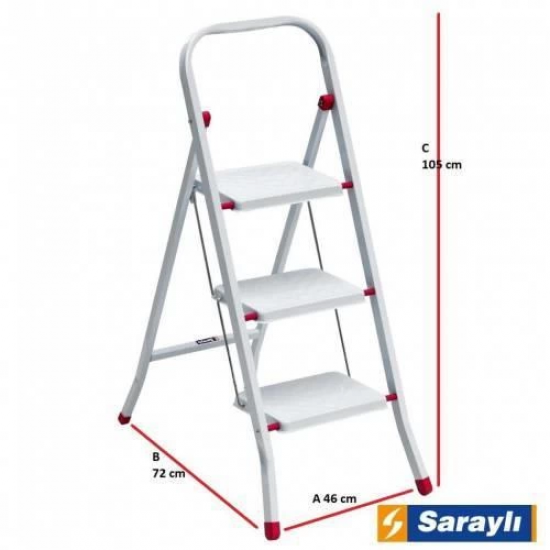 Mey İthalat® Saraylı Pratik Metal Merdiven Beyaz 3 Basamaklı