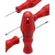 Bu 7li tornavida seti, evde yapılan basit tamir işlerinden atölyede gerçekleştirilen daha karmaşık onarımlara kadar geniş bir kullanım alanı sunmak üzere tasarlanmıştır. Set içerisinde yer alan 4 adet düz uçlu ve 3 adet yıldız uçlu parça, farklı vida tiplerine ve boyutlarına kolayca uyum sağlar. Böylece tek bir set ile birçok farklı vidalama ihtiyacını karşılamak mümkün hale gelir.Ergonomik tutma yapısına sahip saplar, kullanım sırasında elinize rahatça oturur ve uzun süreli çalışmalarda bile konfor sunar. Kaymayı azaltan yüzeyi sayesinde vidalama işlemleri sırasında daha kontrollü ve güvenli bir kullanım sağlar. Bu özellik, özellikle hassas montaj ve sökme işlemlerinde büyük avantaj yaratır.Setin düzenli ve taşınabilir bir kutu içerisinde sunulması, ürünlerin hem korunmasını hem de kolayca saklanmasını sağlar. İhtiyaç duyduğunuzda aradığınız parçaya hızlıca ulaşabilir, işlerinizi kesintiye uğratmadan devam ettirebilirsiniz. Ev, iş yeri veya atölye ortamında düzenli çalışma alanı oluşturmanıza yardımcı olur.Dayanıklı yapısı sayesinde uzun ömürlü kullanım sunan bu set, hem bireysel kullanıcılar hem de profesyoneller için ideal bir çözümdür. Mobilya montajı, elektrik işleri, küçük ev aletleri onarımları ve genel tamir işlemleri için güvenle tercih edilebilir.