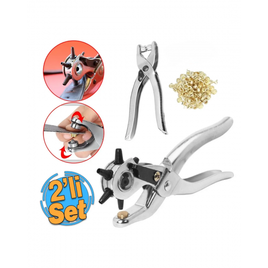 Mey İthalat® Kemer Delik Açma Aparatı 2li Set Deri Çanta Kayış Delme Aleti