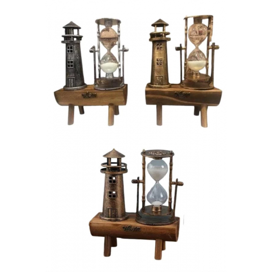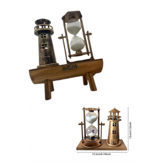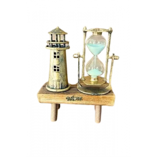 Mey İthalat® Hediyelik Eşya Retro Deniz Fenerli Kum Saati Ahşap Görünümlü Dekoratif Eşya
