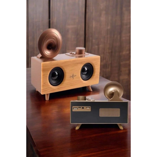 Mey İthalat® Bluetooth Hoparlör Ahşap Klasik Retro Gramofon Bluetooth Müzik Kutusu