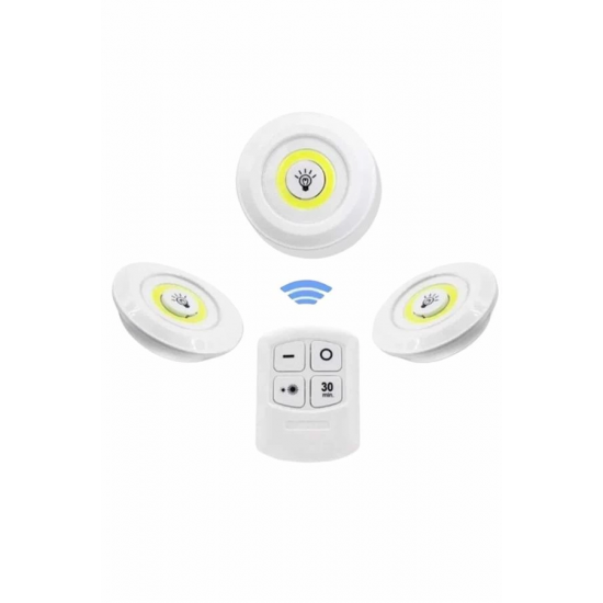 Kumandalı Spot LED Lamba Seti | Ayarlanabilir Işık Şiddeti ve Zamanlayıcı Özellikli – 3'lü PaketYaşam alanlarınıza pratiklik ve şıklık kazandıran bu kumandalı spot LED lamba seti, özellikle banyo ve mutfak gibi aydınlatmaya ihtiyaç duyulan alanlarda konforlu kullanım sunar. Kompakt tasarımı ve kablosuz yapısıyla evinizin her köşesinde kolayca monte edilebilir; ister dolap içlerinde, ister raf altlarında, isterse koridor gibi az ışık alan bölgelerde etkili bir çözüm sağlar.Her biri x3W COB LED teknolojisiyle donatılmış olan spot lambalar, güçlü ve homojen bir aydınlatma sunarken enerji tasarrufunu da ön planda tutar. Ürün, 3 adet AAA pil ile çalışır (piller pakete dahil değildir) ve tamamen kablosuz yapısıyla priz gereksinimini ortadan kaldırır. Bu sayede istediğiniz her alanda özgürce konumlandırabilirsiniz.Ürünün birlikte gelen akıllı kumandası, ışık şiddetini ayarlama, spotları belirli bir mesafeden açıp kapama ve 30 dakikalık zamanlayıcı kurma gibi işlevsel özellikler sunar. Dilerseniz spotların üzerindeki dokunmatik tuşlar ile manuel kontrol de sağlayabilirsiniz. Kumandanın duvara sabitlenebileceği özel haznesi sayesinde her zaman elinizin altında olmasını sağlayabilir, kaybolmasının önüne geçebilirsiniz.Çift taraflı yapışkan bantları sayesinde delme ya da vidalama işlemi gerektirmez; düz yüzeylere kolayca monte edilir ve istenildiğinde iz bırakmadan çıkarılabilir. Hem estetik hem de fonksiyonel bu LED spot seti, ortam aydınlatmasını kişiselleştirmek isteyenler için mükemmel bir tercihtir.