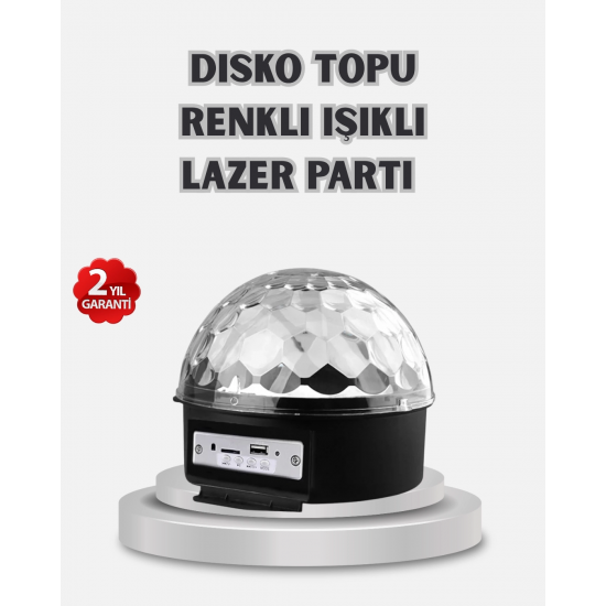 Mey İthalat® LED Disko Küresi Bluetooth Hoparlörlü Ritimle Senkronize Döner Işıklı