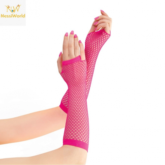Mey İthalat® 80’ler 90’lar Retro Neon Fuşya Şeker Pembesi File Parmaksız Eldiven 26 cm