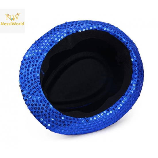 Mey İthalat® Disko Star Mavi Payetli Fötr Şapka Yetişkin Boy