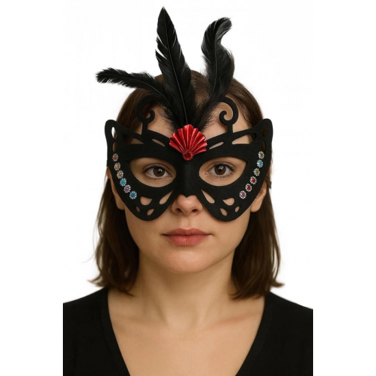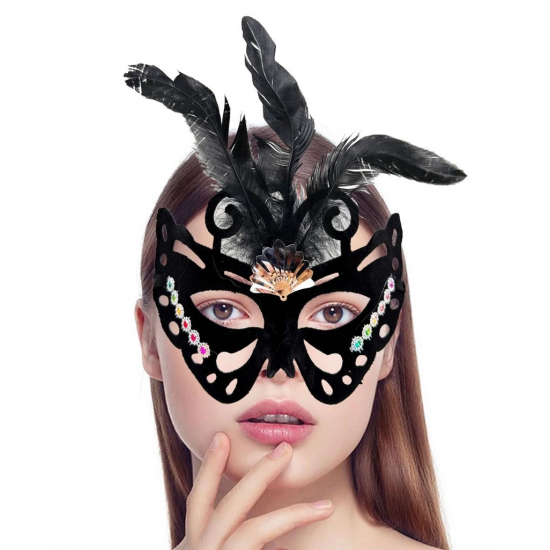 Mey İthalat® Siyah Renk Siyah Süet Kaplama Tüylü Kelebek Figür Parti Maskesi 24x18 cm