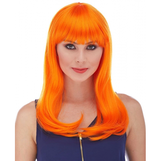 Mey İthalat® Turuncu Renk Uzun Düz Parti Peruğu