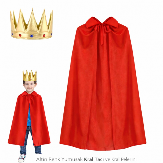 Mey İthalat® Çocuk Kral Kostüm Seti (Taç + Pelerin)