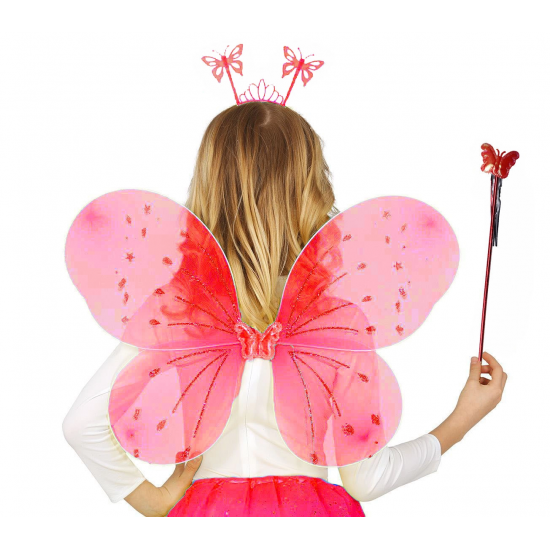 Ürün Adı: Kırmızı Renk Çocuk Kelebek Kanat Taç Asa Seti 50 cm
