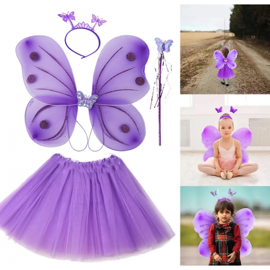 Mey İthalat® Lila Mor Kelebek Kostümü - Lila Mor Kelebek Kostüm Aksesuar Seti 4 Parça