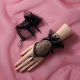 Mey İthalat® Siyah Dantel Fiyonklu Parmak Halkalı Kadın Eldiveni