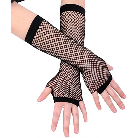Mey İthalat® Siyah Renk Uzun File Eldiven - Örgü Eldiven Siyah Renk