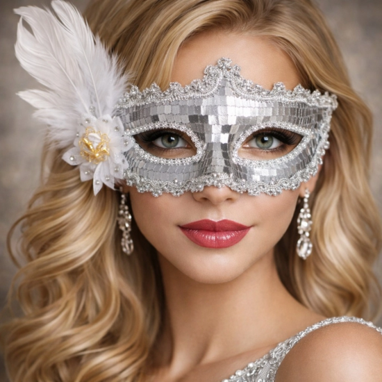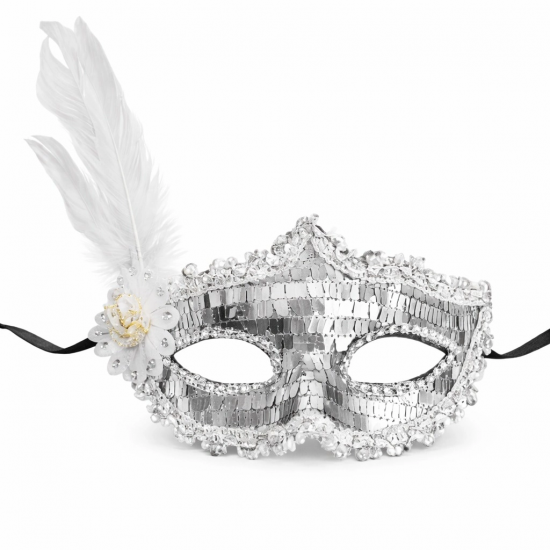 Mey İthalat® Gümüş Tüylü Payetli Lüks Taşlı Parti Maskesi