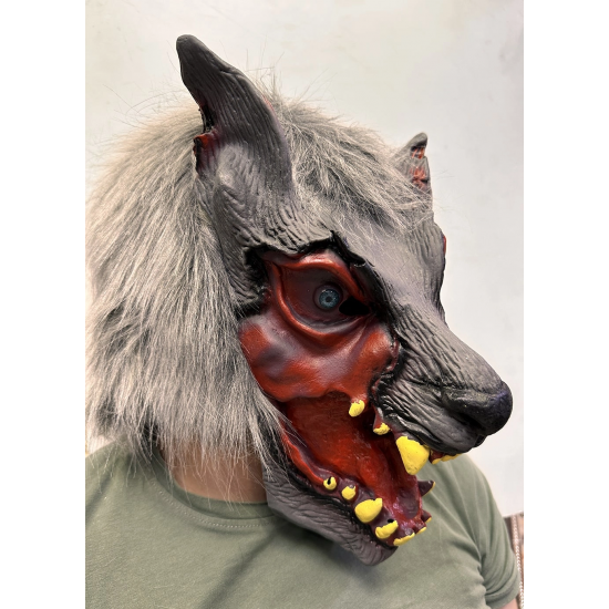 Mey İthalat® Kafaya Tam Geçmeli Lateks Dişli Ağzı Açık Kurt Maskesi