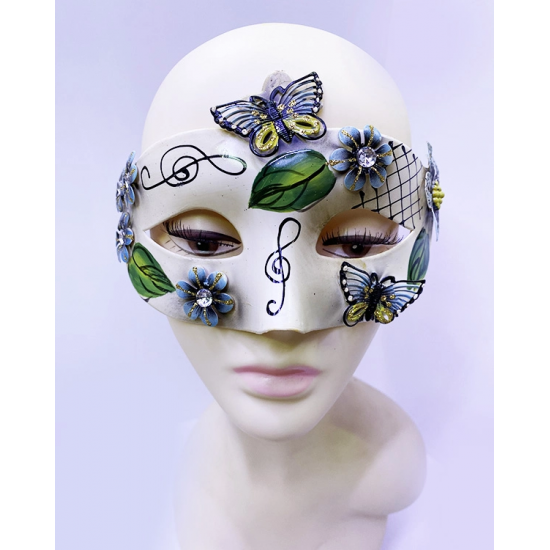 Mey İthalat® Kelebek ve Çiçek İşlemeli Venedik Maskesi Siyah Renk 10x18 cm